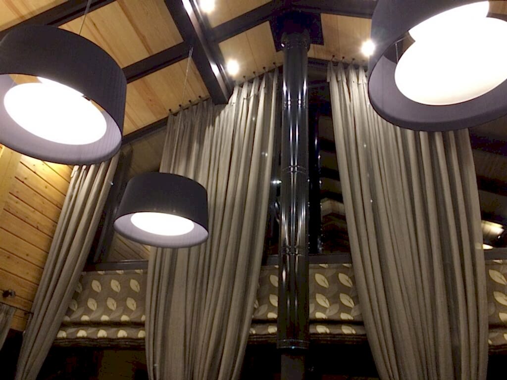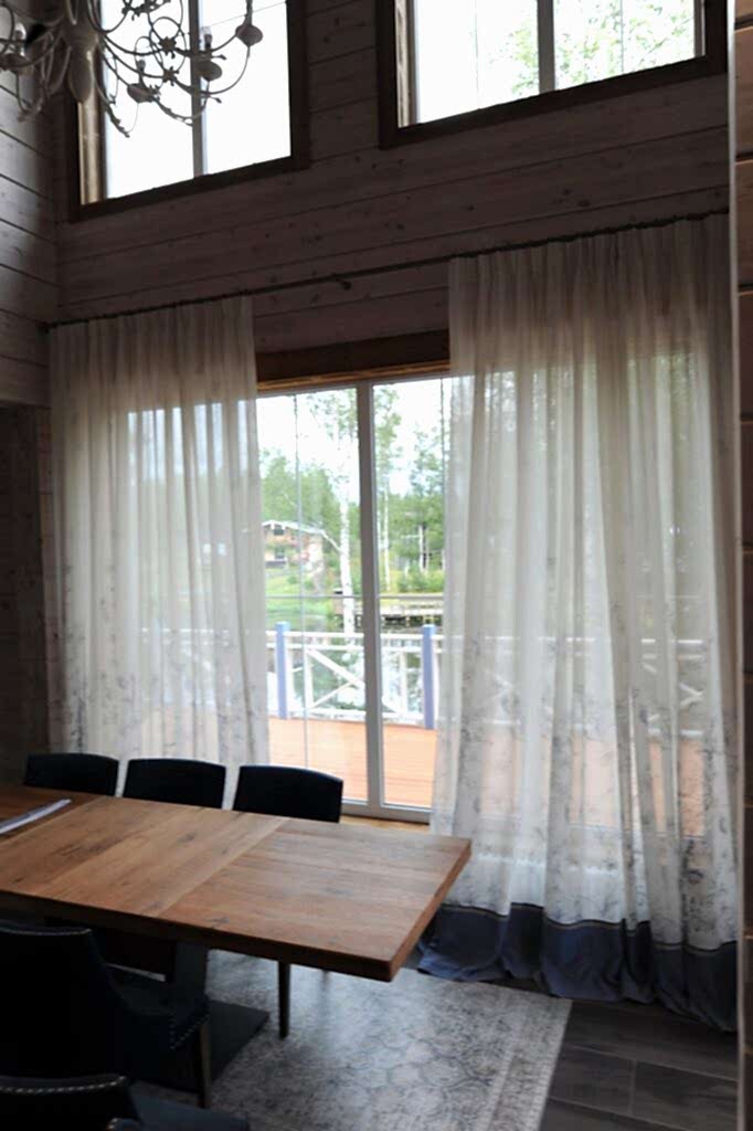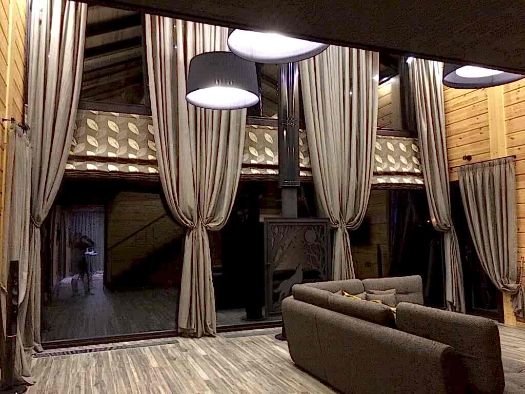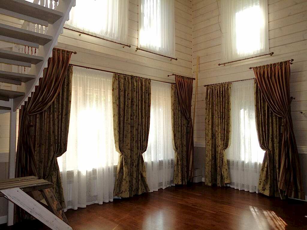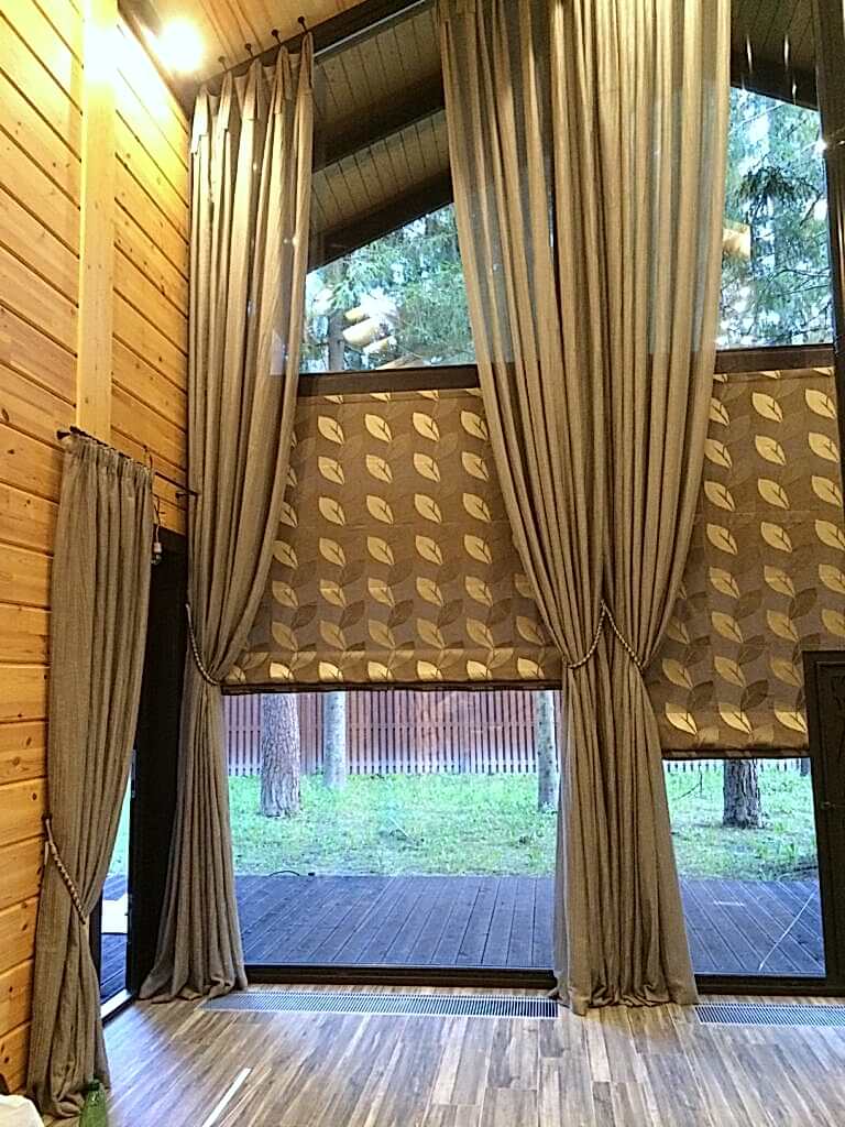 Важно учесть нестандартные параметры и большой вес портьер, которые потребуют усиленного Пин-ап карнизов и управления шторами на большой высоте. Для этого понадобятся карнизы и солнцезащита с электроприводом и дистанционным управлением. Поскольку выбор данных устройств обширен, нужно грамотно выбрать нужные модели из расчета высоты и веса изделия.