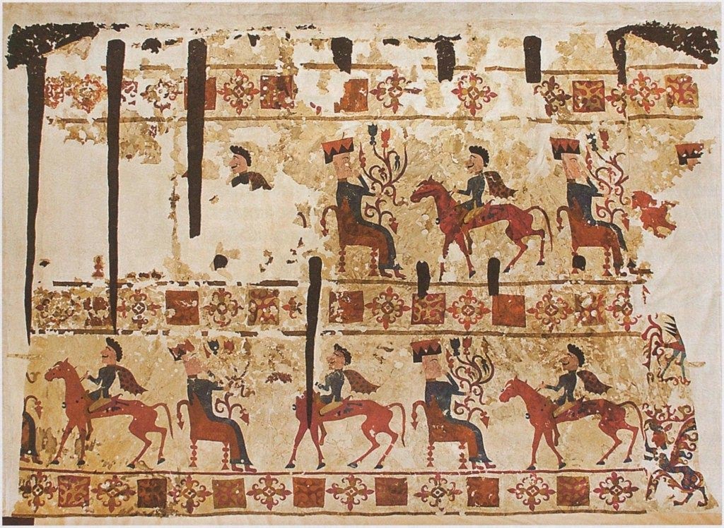 Декор ткани и орнаменты бордюров повторяли и при росписи керамики, фрагментарно сохранившейся по сей день, в отличии от текстиля.