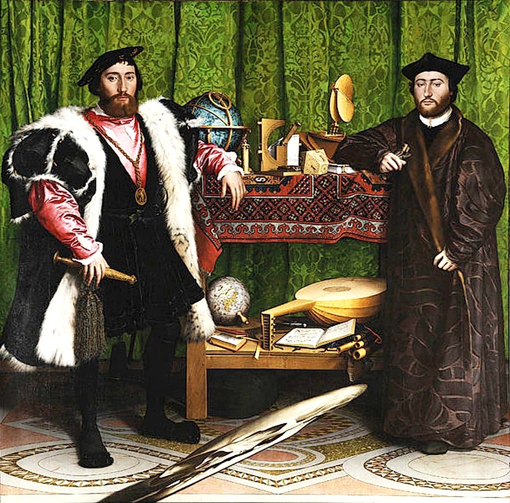 Прекрасный пример - известная картина Ганса Гольбейна Младшего «Послы» (1533), на которой, кстати, на заднем фоне тоже видим ткань, мягкими Пин-ап покрывающую стену.