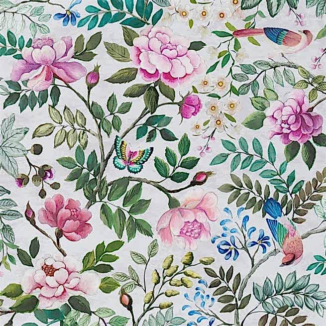 Коллекция весна-лето 2022 отDesigners Guildотличается детально прорисованными декоративными мотивами, изображениями вьющихся цветов и птиц, которые Пин-ап замысловатые узоры как на тонком фарфоре XVIII века. Великолепные рисунки нанесены на бархатные, льняные и хлопчатобумажные ткани при помощи цифровой итрафаретной печати, отличающейся яркостью и Пин-ап изображения.