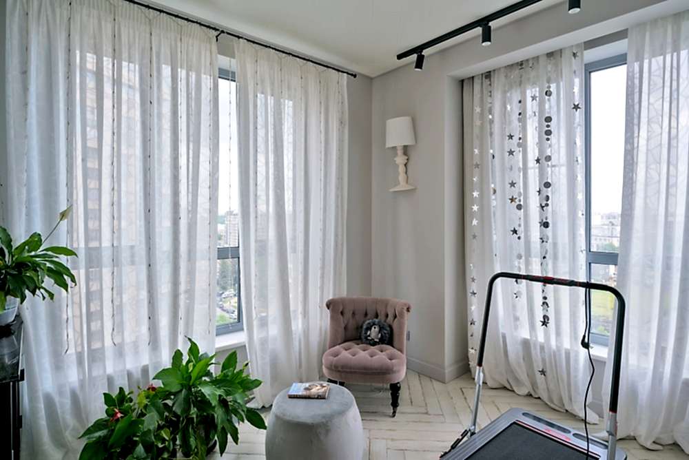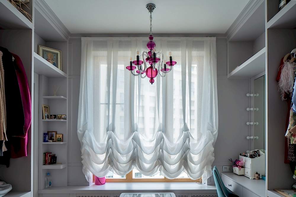 - Шторы на потолочном карнизе позволяют задрапировать плоскость от стены до стены, делая затемнение практически Пин-ап