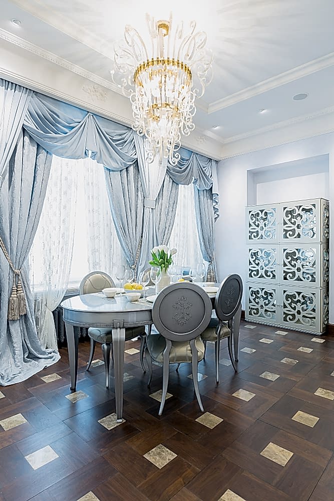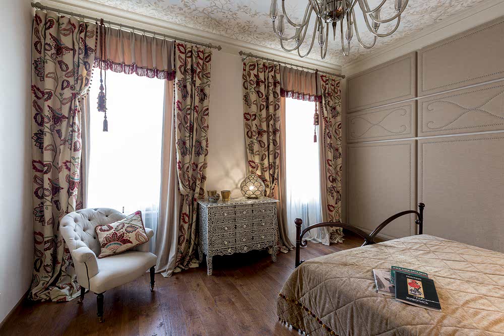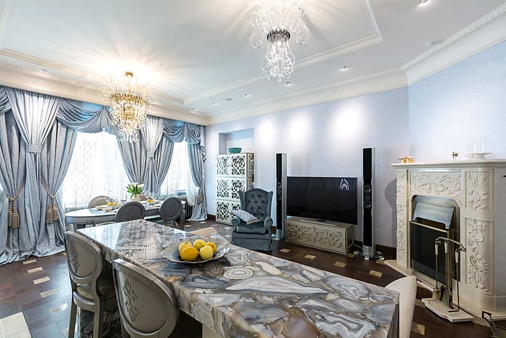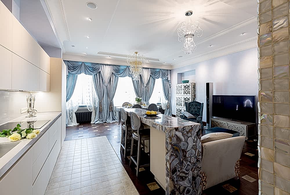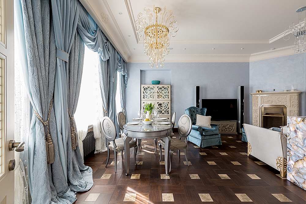 Главная мысль, которая была идеей создания этого интерьера, это воплощение голубой мечты хозяйки о прекрасном и удивительном доме с ощущением полного её присутствия в каждой детали. Ничего случайного, всё должно нравиться, быть приятным, удобным, радующим глаз, удивительным, нести максимум комфорта, полноты жизни и эмоции. Сложно Пин-ап в каком стиле сделан интерьер - это простоФьюжн. Мы пришли в дом середины 19 века, с построенным пространством по принципу организации жизни как современное, насытили деталями от классики, модерна, арт-деко, историзма домарокканского стиля.