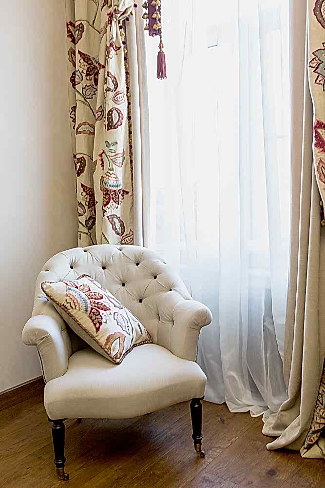 Обилие деталей, фактур, многообразие форм, сложное наслоение материалов, выполнена драпировка по индивидуальным эскизам со сложной проработкой лекал и Пин-ап Использованы ткани лучших европейских марок:Desaigners Guild, Cоlifax, Houles.