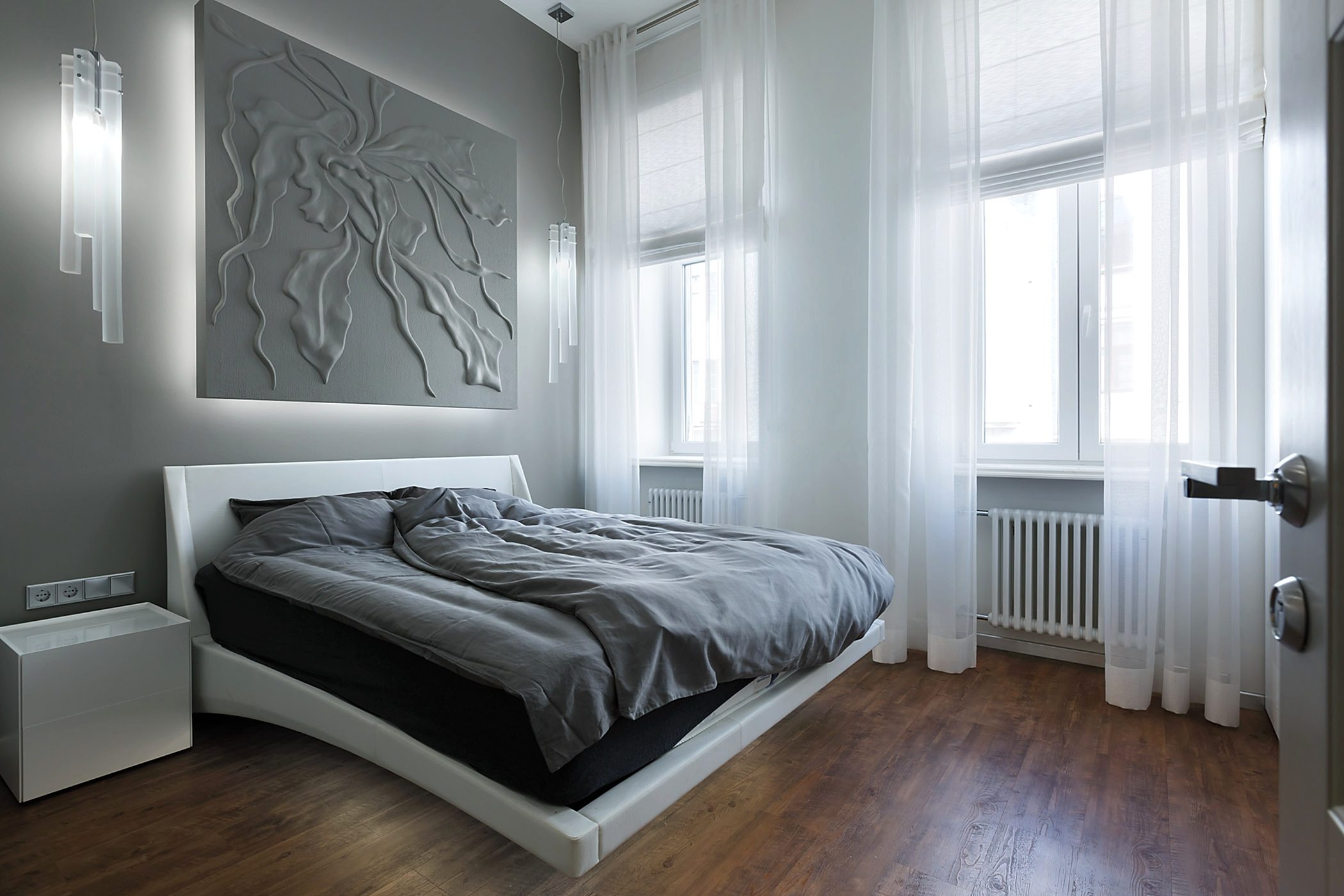 Минимализм - модный тренд последних лет, Пин-ап и находящий свои детали и фактуры. В небольшом пространстве квартиры использован приём повтора дизайна окон - типовое решение для такого интерьера, очень лаконичное и сдержанное. Такие повторения в дизайне визуально «усложняют» и увеличивает пространство. Функциюсветозащитыздесь выполняет римская штора средней плотности. Плоская штора с четкими горизонтальными линиями складок не только работает как идеальная защита от яркого Пин-ап света, но и являет собой эффектную систему декора.
