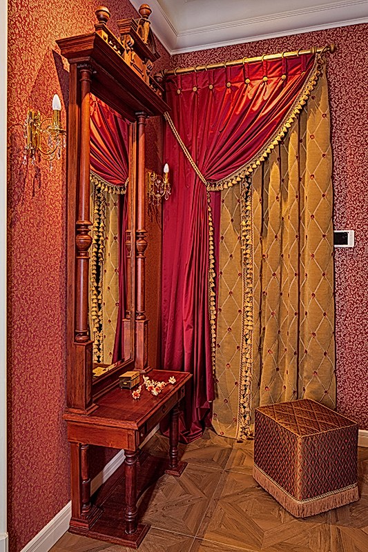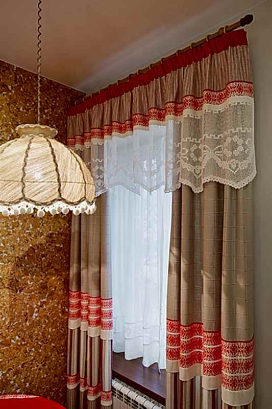 Когда создаётся новый офис для работы дизайнеров, надеешься, что сейчас придумаешь что-то необычное. Но в этом пространстве хотелось найти какие-то старые вещи, из вечных ценностей или милых глупостей и собрать новое из воспоминаний прошлого. Красные бабушкины плюшевые шторы из детства превратить в волшебную драпировку. Меня всегда интересовало народное искусство и его жизнь в современном интерьере, поэтому и возникло одно из решений с применением кружев, сплетённых вручную, добытых мной в путешествиях. Груду красивых тканей, нравившихся когда-то или модных сейчас, собрать в одном месте и показать, какие они могут быть разные при многообразии идей и фасонов. Офис - это рассказ людям о том, что можно сделать со своими окнами, как эти решения меняют дом и как выглядят орнаменты, фактуры и обязательно с натуральными волокнами. Мысль о поиске и создании разнообразных деталей и необычных фасонов прошла красной нитью. Кроме желания получить что-то фантазийное была ещё техническая необходимость показать разные крепления карнизов и системсолнцезащиты.