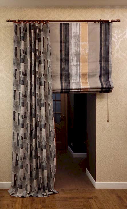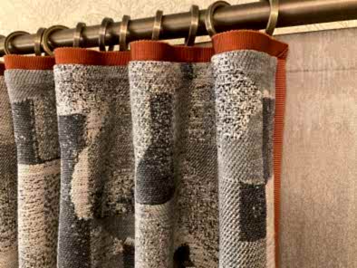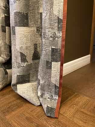 Портьера отшита из фактурной ткани с жаккардовым рисунком «бутылки» премиального качества от английского бренда Villa Nova. Хорошо подходит для изготовления обивки мягкой мебели, портьер и подушек. Ткань смесовая с натуральным составом. По краям выполнена отделка декоративной Пин-ап с репсовым переплетением в терракотовом цвете. По верху пришита шторная лента «Волна», которая задает современный вид и ритм портьере